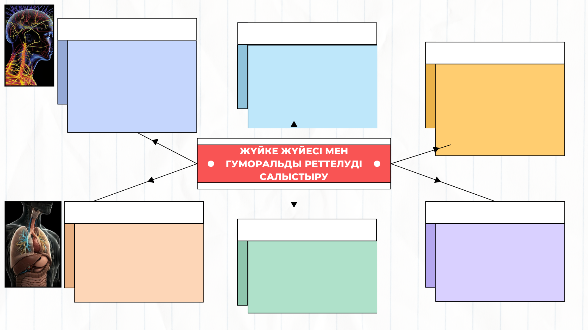 1-тапсырма. Топтық жұмыс. «Ой картасы» әдісі Шарты: жүйке жүйесі мен гуморальды реттелудің ерекшелігін анықтап, оларды салыстырады.