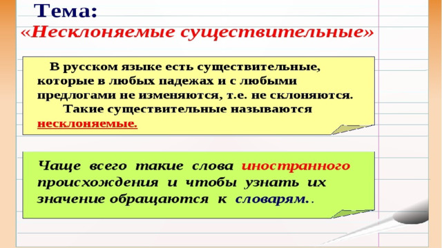 Урок № 43. Несклоняемые имена существительные.