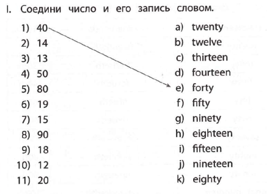 8. Match the numbers with the words.