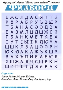 Оқушылар назарын сабаққа аудару. Оқушылар жағымды ахуал қалыптастырады. Жасырған сөздерді табу арқылы тақырыпты анықтап, сабақтың мақсатын айқындайды. |