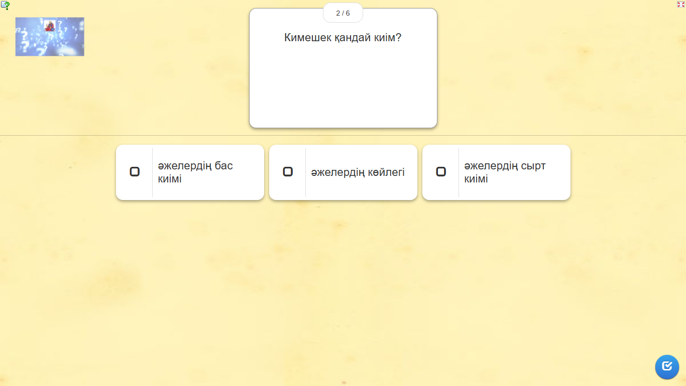 Дескрипторлар: Жалпы балл: 1 балл - бекіту сұрақтарына жауап береді