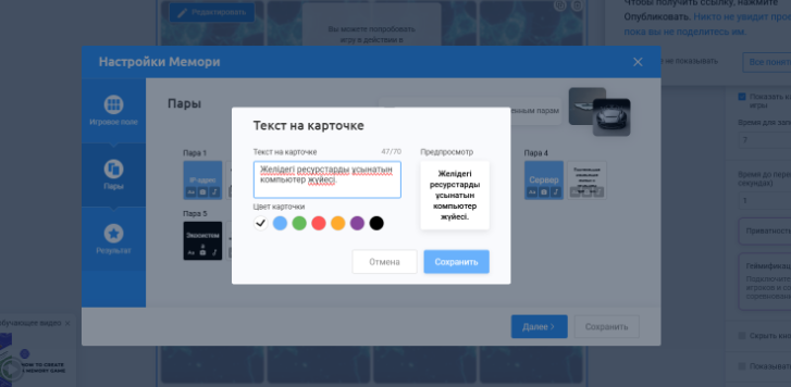 флешкарталар жасауға арналған онлайн-платформа. Ол оқушылардың белсенділігін