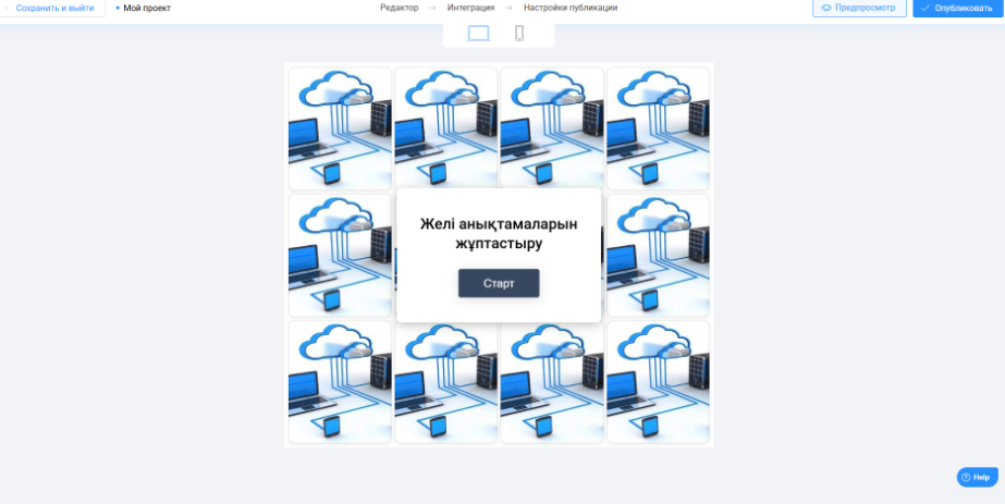 Қатысушы кесілген сурет бөліктерін біріктіріп, толық суретті құрастырады.
