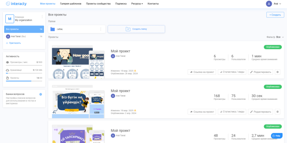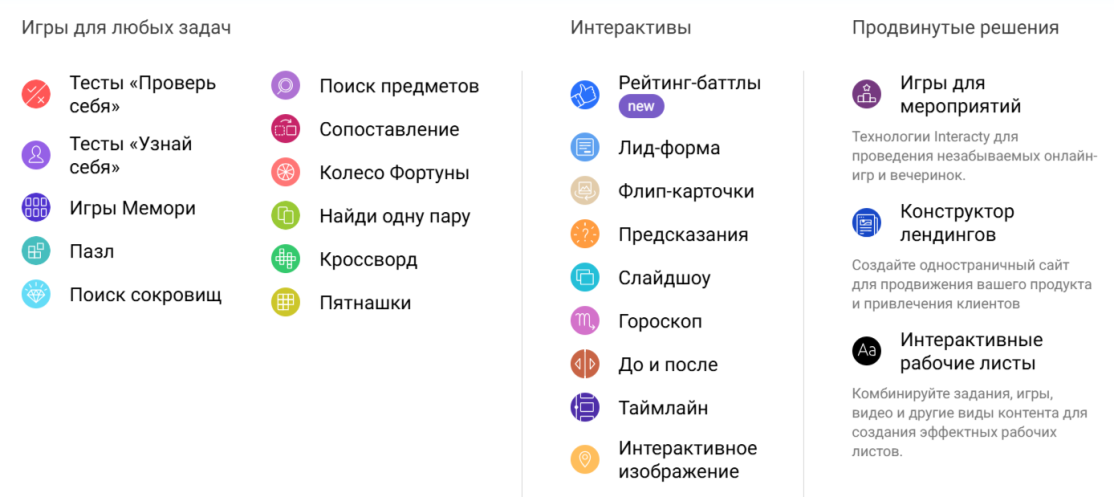 Interacty – интерактивті білім беру және маркетингтік ойындар, викториналар, тесттер,