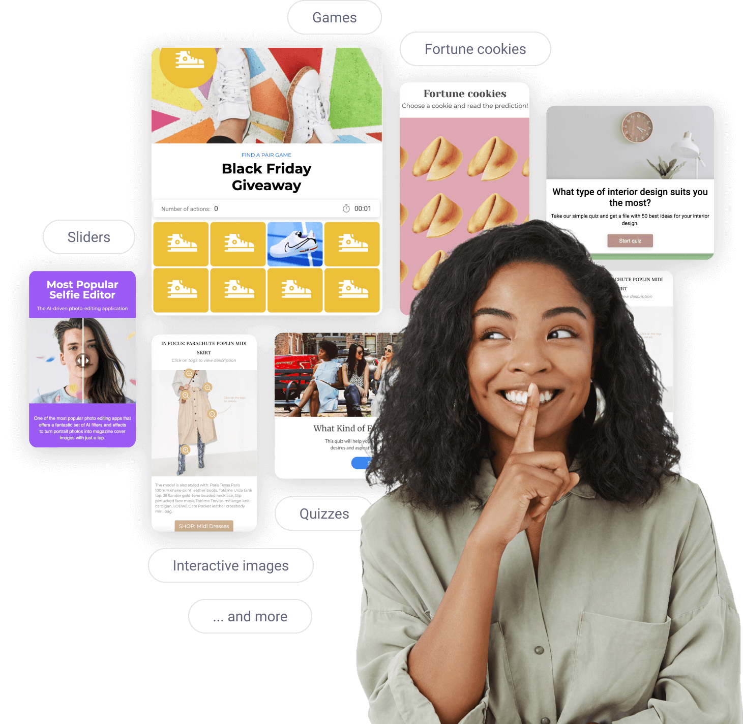 ест, ойын, слайдшоу, келу күнтізбесі немесе сәттілік печеньесі - Interacty механиктерінің көмегімен кез келген идеяны жүзеге асыруға болады.