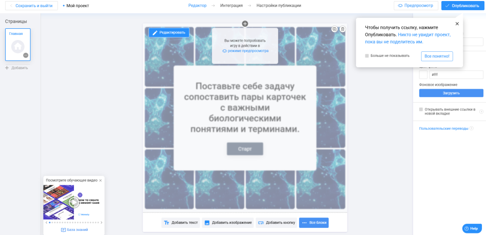 . Жоба дайын болғаннан кейін "Publish" батырмасын басыңыз.