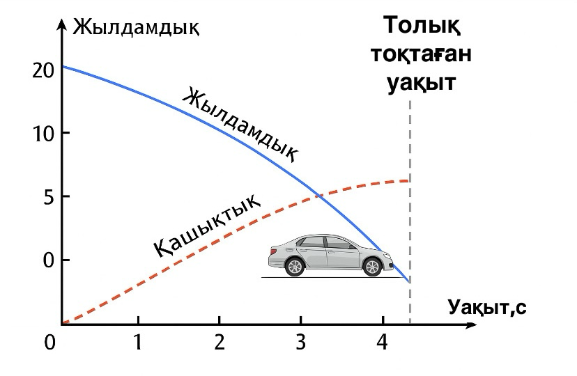 жатып, жүргізуші тежегішті басады. Тежелу үдеуі a = -5 м/с² деп