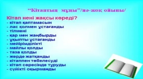 Кері байланыс. «Иә-жоқ» ойыны Кітап нені жақсы көреді? Үй тапсырмасы 7-тапсырма Өз оқу құралдарыңды қалай күтіп ұстайсың? Әңгімелеп айт ЖИ. Сабақты бағалау. |