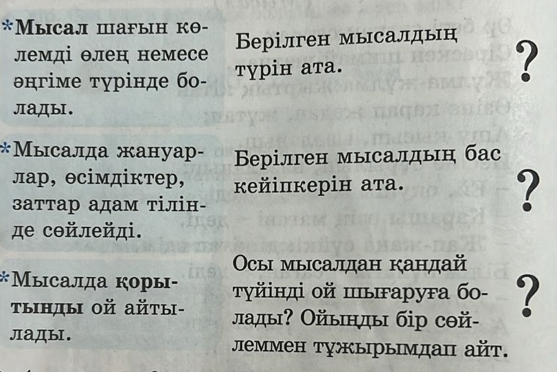 Дескриптор: Мысалдың түрлеріне оқыған мәтінді сәйкестендіреді-1б