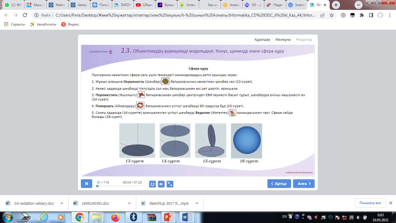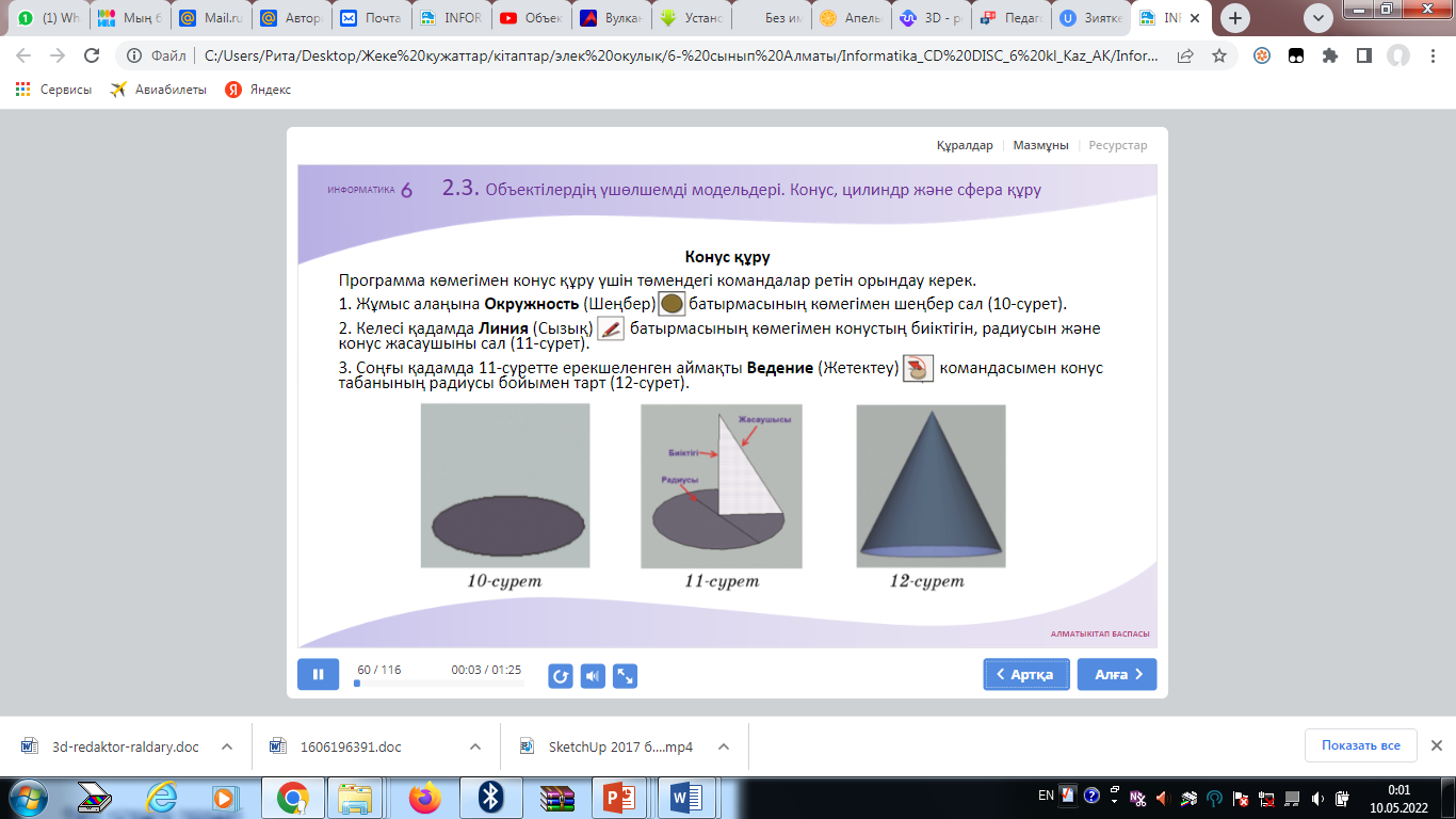 ОБЪЕКТІЛЕРДІҢ ҮШӨЛШЕМДІ МОДЕЛЬДЕРІ. КОНУС, ЦИЛИНДР ЖӘНЕ СФЕРА ҚҰРУ
