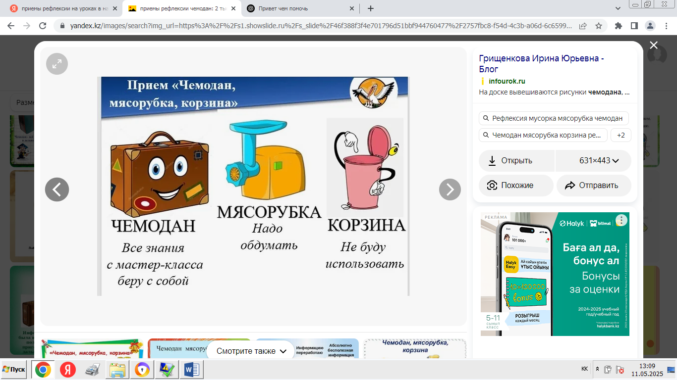 Используйте игры для итогового осмысления урока: цветовой светофор, "Чемодан - мясорубка - корзина", "Герой моего настроения".