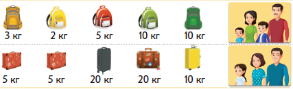 (П) Работа в парах. Вычисли массу багажа каждой семьи. Сравни.