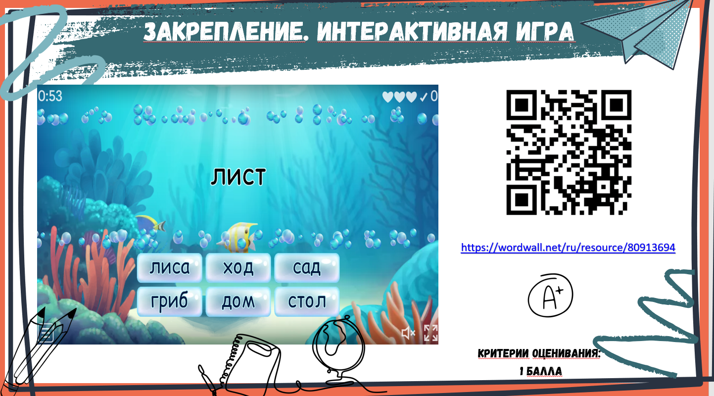 «Мы проделали большую работу, и теперь пришло время подвести итоги в форме интерактивной игры! Давайте проверим, действительно хорошо вы усвоили тему. Будьте внимательны и активны – вперед к победе!» Интерактивная игра