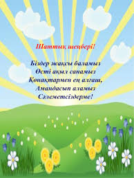 Шеңбер бойы тұрып,өлең шумақтарын қайталайды ӨҚН мен танысады Топқа бөлінеді Сайыс барысымен таныс болады Дұрыс деп тапқан жауабына ия» немесе «жоқ» деп жауап береді Сұрақтарға алғаш жауап беріп үлгереді Жұмбақтардың шешуін үш тілде табады Интерактивті тақтада берілген сұрақтарға жауап береді Өрнектерді жылдам әрі дұрыс шешеді Жеңімпаздар марапатталады |
