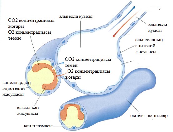 Өкпедегі қанның оттекке қанығуы. Ұлпа мен қан арасындағы газ алмасу.