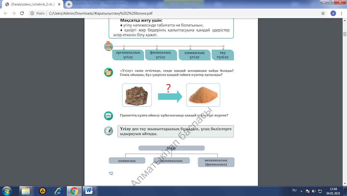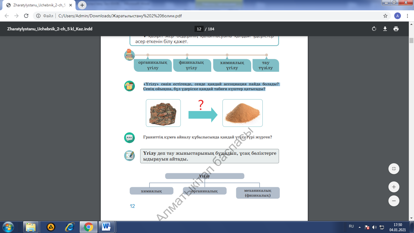 2. «Үгілу» сөзін естігенде, сенде қандай ассоциация пайда болады? Сенің ойыңша, бұл үдеріске қандай табиғи күштер қатысады?