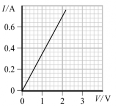 4.Тұрақты температурадағы металл өткізгіштің вольт-амперлік сипаттамасының графигі бейнеленген. Графикті пайдалана отырып металл сымның кедергісін анықтаңыз.