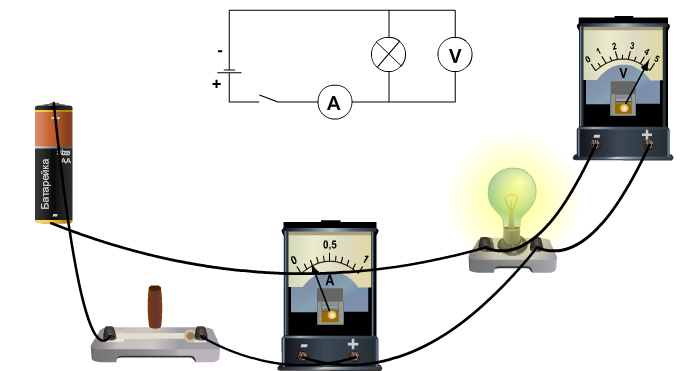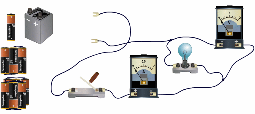 1. Ток күші, кернеу және кедергі арасындағы тәуелділікті тәжірибеде тексерейік. Оныӊ үшін төмендегі тізбекті құрастырамыз.