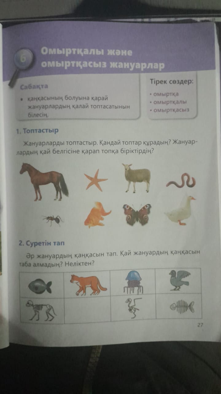 3.2.2.1 жануарларды омыртқалыларға және омыртқасыздарға жіктеу; 3.1.2.1 - ақпарат көздерінің артықшылықтары мен кемшіліктерін анықтау; |