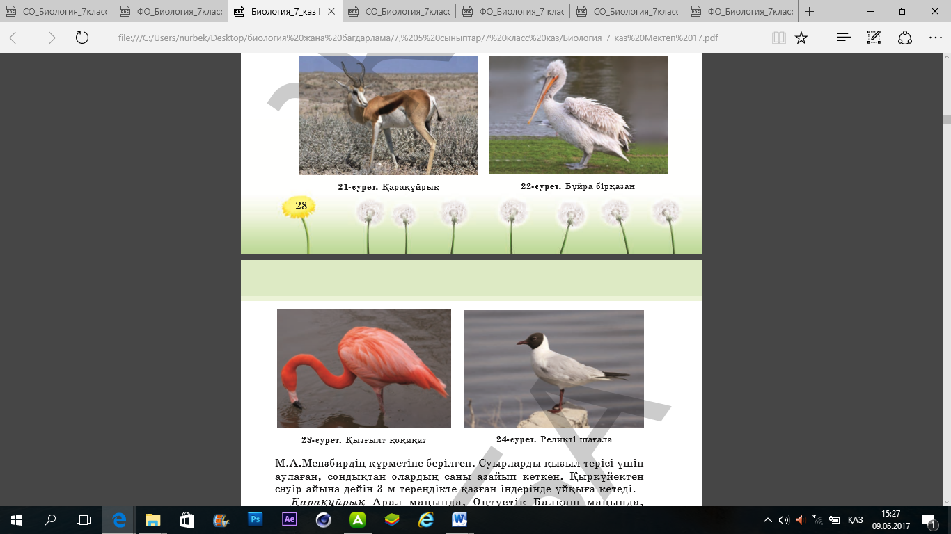 3.2.2.5 Жануарлардың айқындалған мінез құлықтарының мекен ету ортасының ерекшеліктеріне байланыстылығын түсіну және түсіндіру |