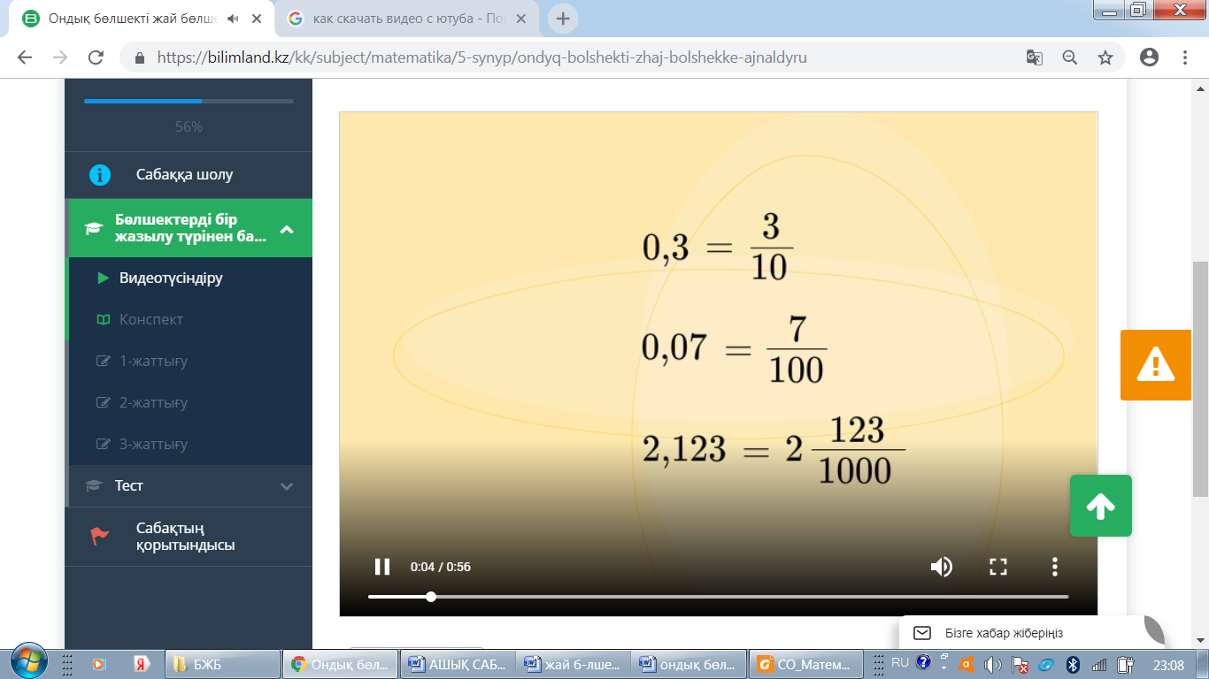 ондық бөлшекті жазу/анықтау; (ЕБҚ) ондық бөлшекті жай бөлшекке