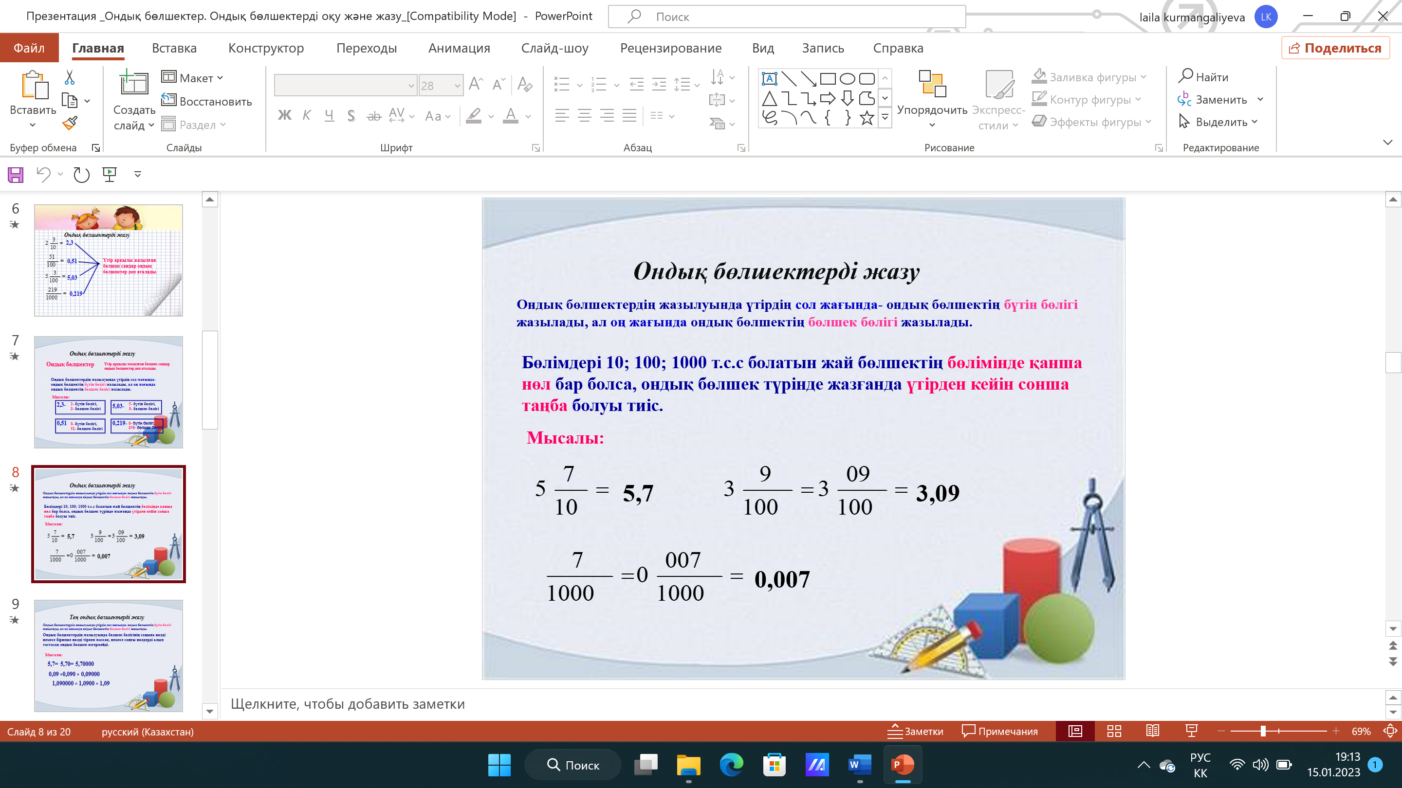 Ондық бөлшек. Ондық бөлшектерді оқу және жазу. Ондық бөлшекті жай бөлшекке айналдыру |