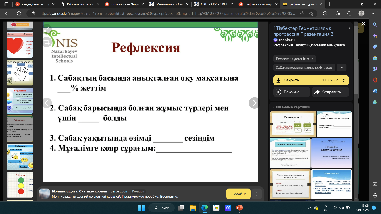 Мұғалім сабақты қорытындылау мақсатында оқушылардың сабаққа деген көзқарасын, рефлексиясын тыңдайды.