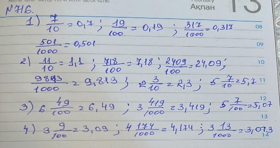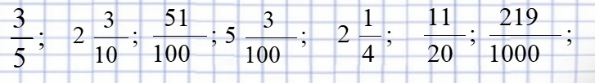 Мына сандардың арасынан бөлімі 10; 100; 1000 болатын сандарды теріп алыңыз. Бүтін және бөлшек бөліктерін ажырат: