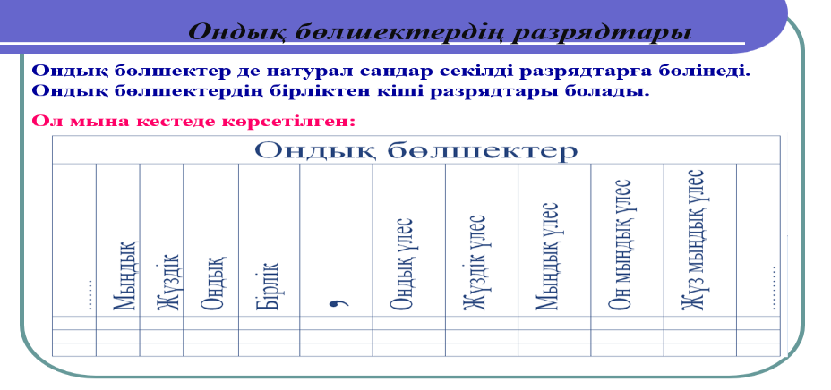 Ондық бөлшектер және оларға амалдар қолдану |