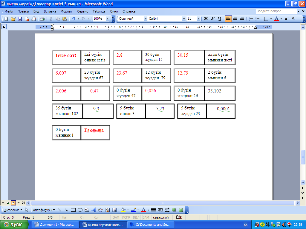 5.1.1.13 ондық бөлшек ұғымын меңгеру; 5.5.2.5 ондық бөлшектерді оқу және жазу; |