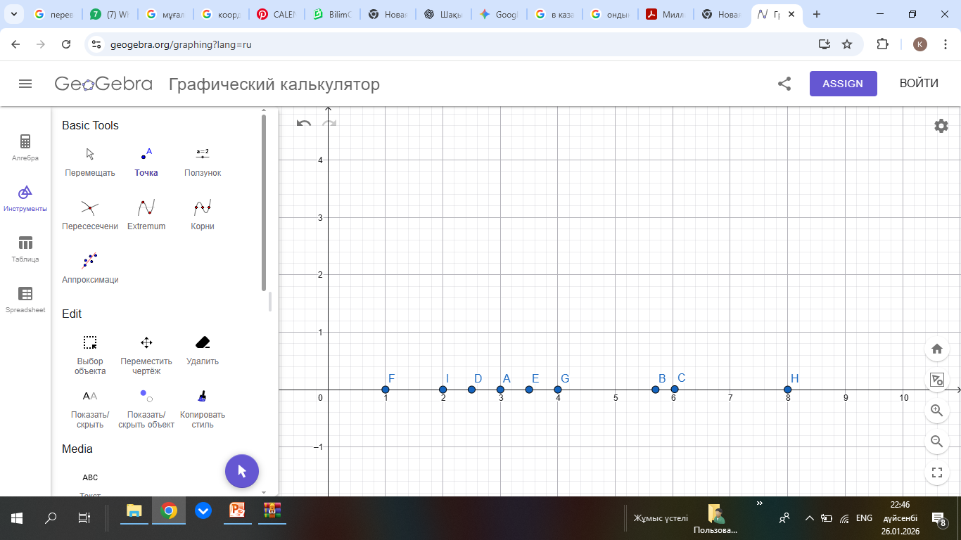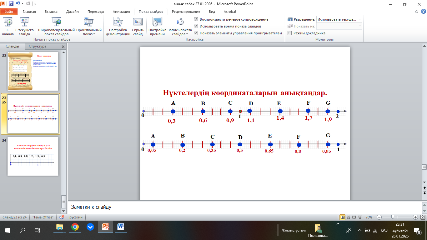 Дискрипторлар:-Координаталық сәуледегі бірлік бөлігін дұрыс анықтайды. -Нүктелердің орналасқан орнын дәл табады. |