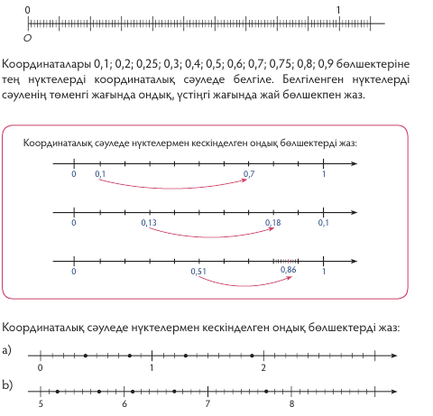 Ондық бөлшектерді координаталық сәуледе кескіндеу 5 сынып