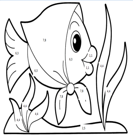 Көк түспен бояңыз: 46,8:6= жасыл түспен бояңыз: 39,6:9= Сары түспен бояңыз: 50,4:8= қоңыр түспен бояңыз: 102,5:41=