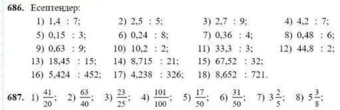 бірнеше есептерді шығартамын 1) Бөлшекті үтіріне қарамай сол санға бөлеміз; 2) Бөліндіге үтірді бөлінгіштін бүтін бөлігі біткен кезде қоямыз. Егер бүтін бөлігі бөлгіштен кіші болса, онда бөлінді нөл бүтінмен басталады. өрнектің мәнін табу үшін жоғарыдағы ережені қолданамыз |