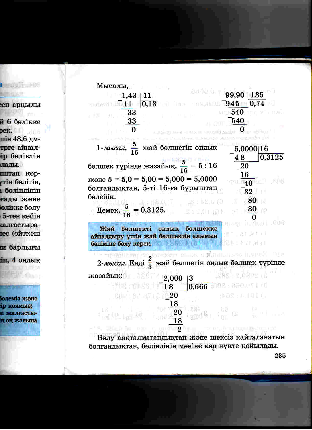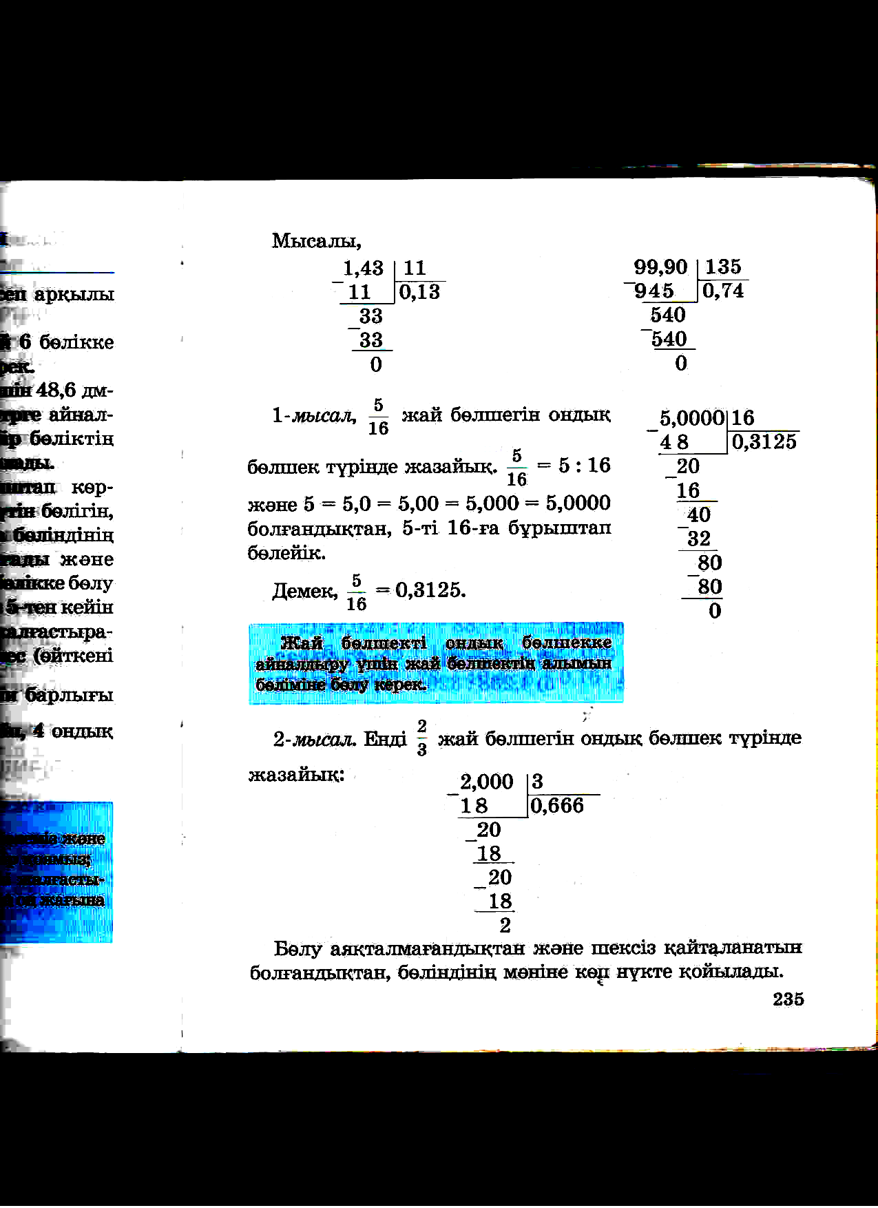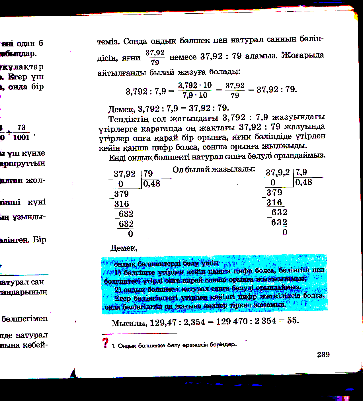 ондық бөлшекті натурал санға бөлуді орындаймыз.