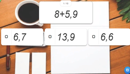 0,17+0,83= 24+0,76= 2,54+3,46= 6,3-2,3+7,5= 6,77+3,23= 12,36-2,64= 12- 3,744= Дұрыс жауаптары: 0,17+0,83= 1 24+0,76= 24,76 6,3-2,3+7,5=11,5 0,01+0,99= 1 6,77+3,23= 10 12,36-2,64=9,72 12- 3,744=8,256 |