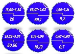 Оқушы әрекеті:Екі ондық бөлшектің қосындысы түрінде жазады, натурал сан мен ондық бөлшектің айырмасы түрінде жазады. а) 1,7+0,3=2 ә) 2,5+2,5=5 б) 5,3+1,7=7 в) 3,4+5,6=9 т.с.с.