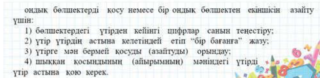 Ондық бөлшектерді калай қосады? Ондық бөлшектерді калай азайтады? |
