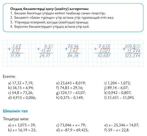 ондық бөлшектерді қосу,азайту