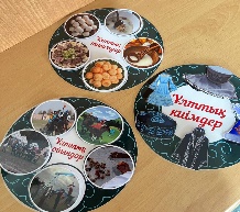 «Математикалық кафе» тәсілі арқылы топтарға сұрақтар беріледі. 1-тапсырма. «Бешбармақ» әдісі арқылы беріледі. Әр бешбармақ бөліктерінде есептер жазылады. Оқушылар есепті дұрыс шығарып тақтаға жазады. 2-тапсырма. «Ұлттық ойындар» тәсілі арқылы беріледі. Әр ұлттық ойынның артында сұрақтар жазылады. Оқушылар есепті дұрыс шығарып тақтаға жазады. |
