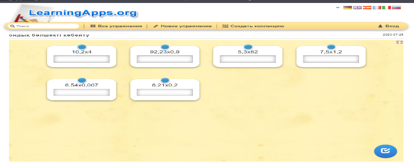 5.1.2.30 Ондық бөлшекті натурал санға және ондық бөлшекке бөлуді орындау |