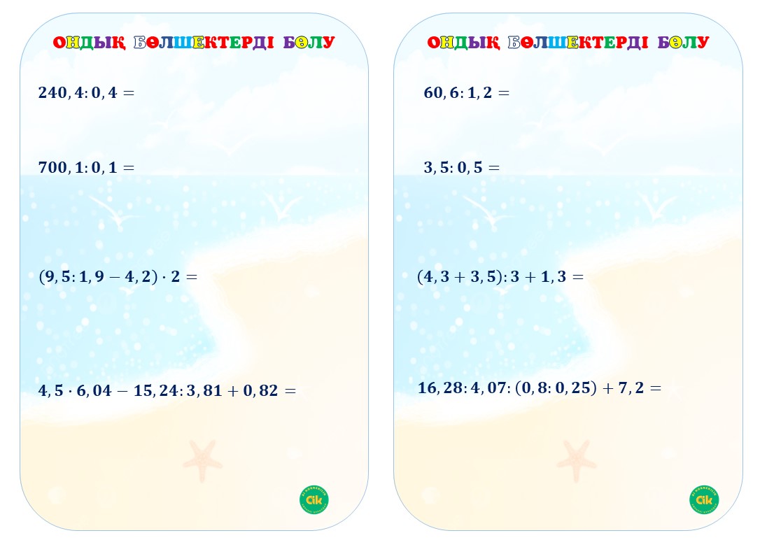 5.3В Ондық бөлшектер және оларға амалдар қолдану |