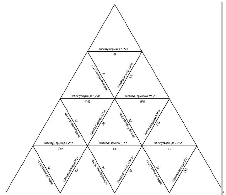 Оқушылар бұл кезеңде жұптық тапсырмаларды орындайды.Берілген уақыт аралығында шығарып,Панел тақтадағы жауаптармен тексереді.Қатіліктер бойынша бағыт алады. Оқушылар топтаса отырыпм берілген есепті тиісті жауаппен теңестіріп,пирамида тәрізді құрастырады.