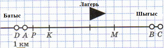 Дескриптор бойынша оқушылар өзін – өзі бағалайды. Жұптық жұмыс №1. Саяхатшылар жорыққа шығып, К, М, Р пункттерінде болды. Бұл пункттер лагерьден қандай қашықтықта?