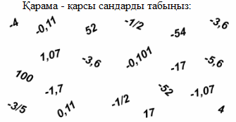 6.1.1.4 координаталық түзудің анықтамасын білу және координаталық түзуді салу; 6.1.1.7 қарама-қарсы сандар ұғымын меңгеру, оларды координаталық түзуде белгілеу; |