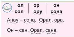 2-тапсырма 1.Өтілетін жаңа дыбысы бар «ошақ» сөзін бөліп алып, дыбыстық талдау жасау. 2.Сөзді «о-шақ» деп созып айтып, жаңа дыбыстың орнын анықтау. 3.«О» дыбысының айтылу ерекшелігімен танысу. 4.«О» дыбысының таңбасы – оның әрпімен танысу. 5.Түймелерден «О» әрпін жасау. 3-тапсырма. Оқылым Шарты: Сөздерді және сөйлемдерді буындап оқы.