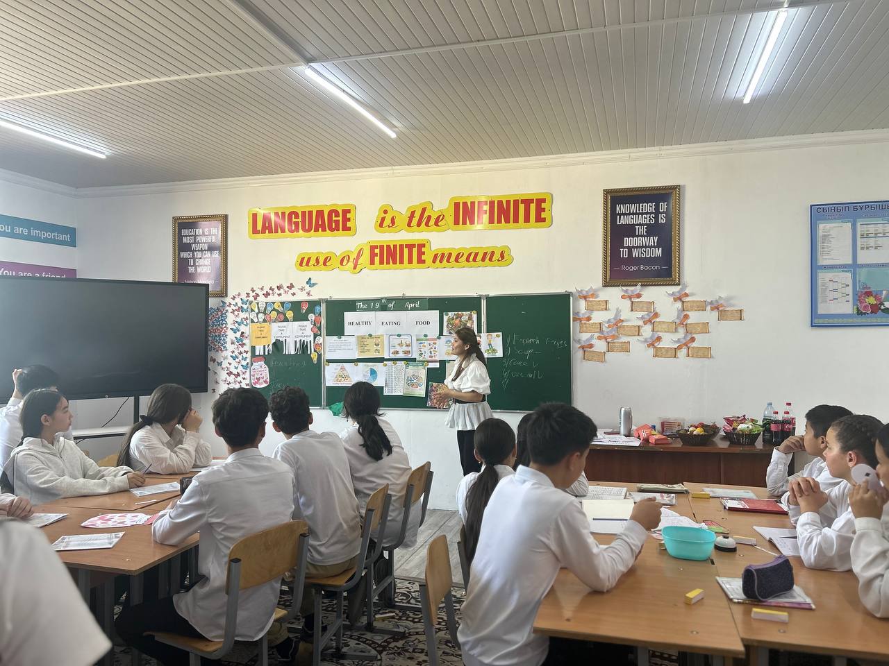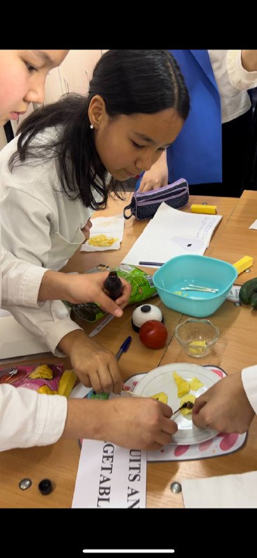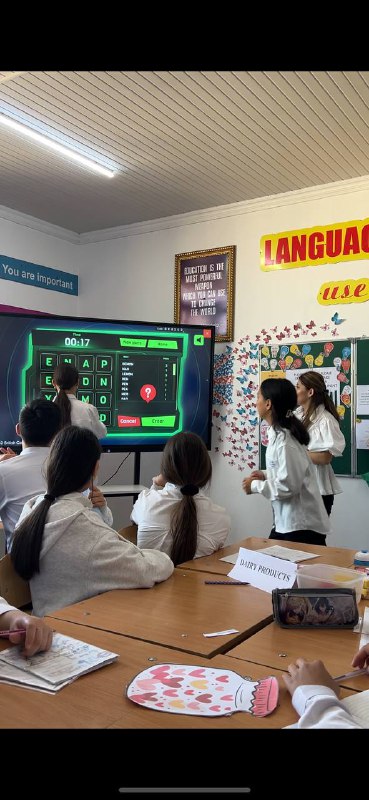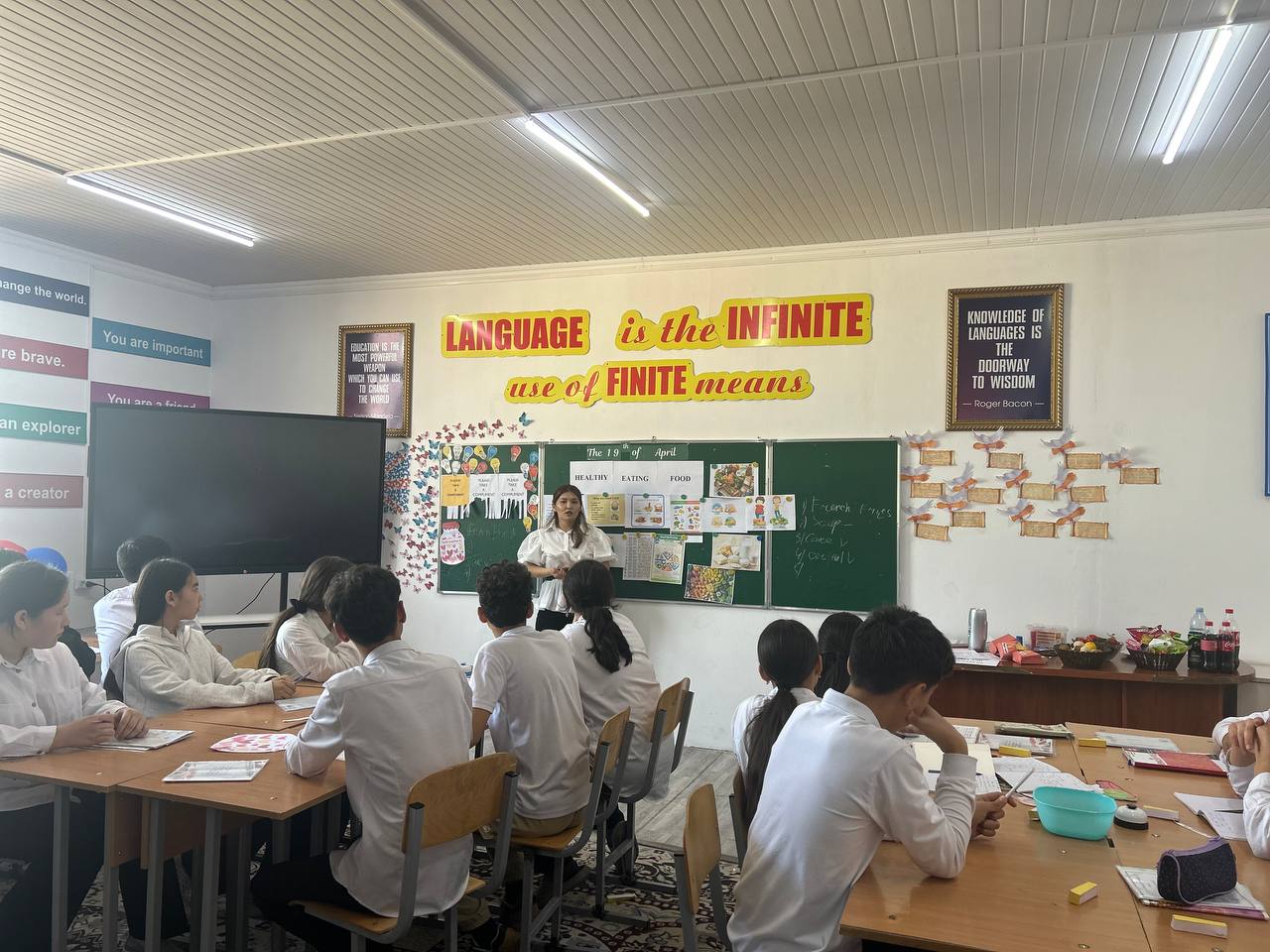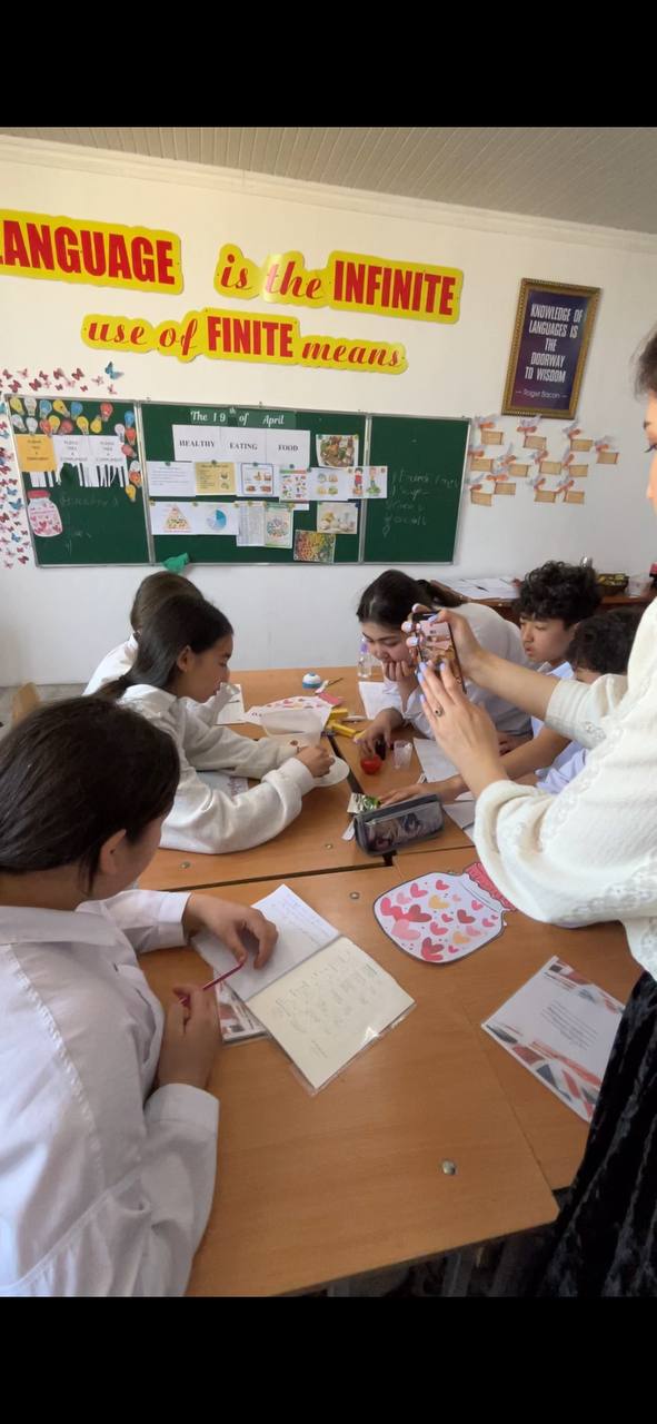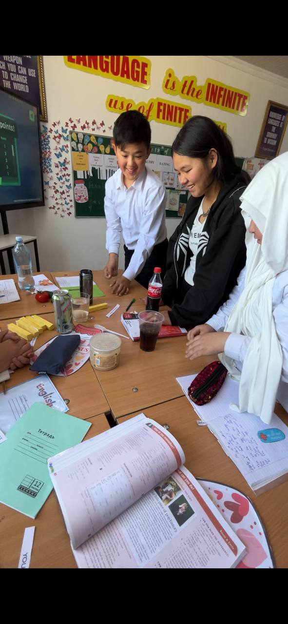 Interactive board game Game “Wordshake” The game is played on an interactive board WARM-UP “Healthy and unhealthy food” The teacher says words and sentences related to healthy and unhealthy foods. Students clap if there is healthy food and sit down if there is unhealthy food .Group work “Unhealthy food” experiment The teacher divides unhealthy food into 3 groups and completes the task. The composition of the food is determined by experiment and the students demonstrate it.