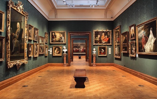 Художественные музеи, например, Лувр или Национальная галерея в Лондоне, которые хранят произведения искусства.