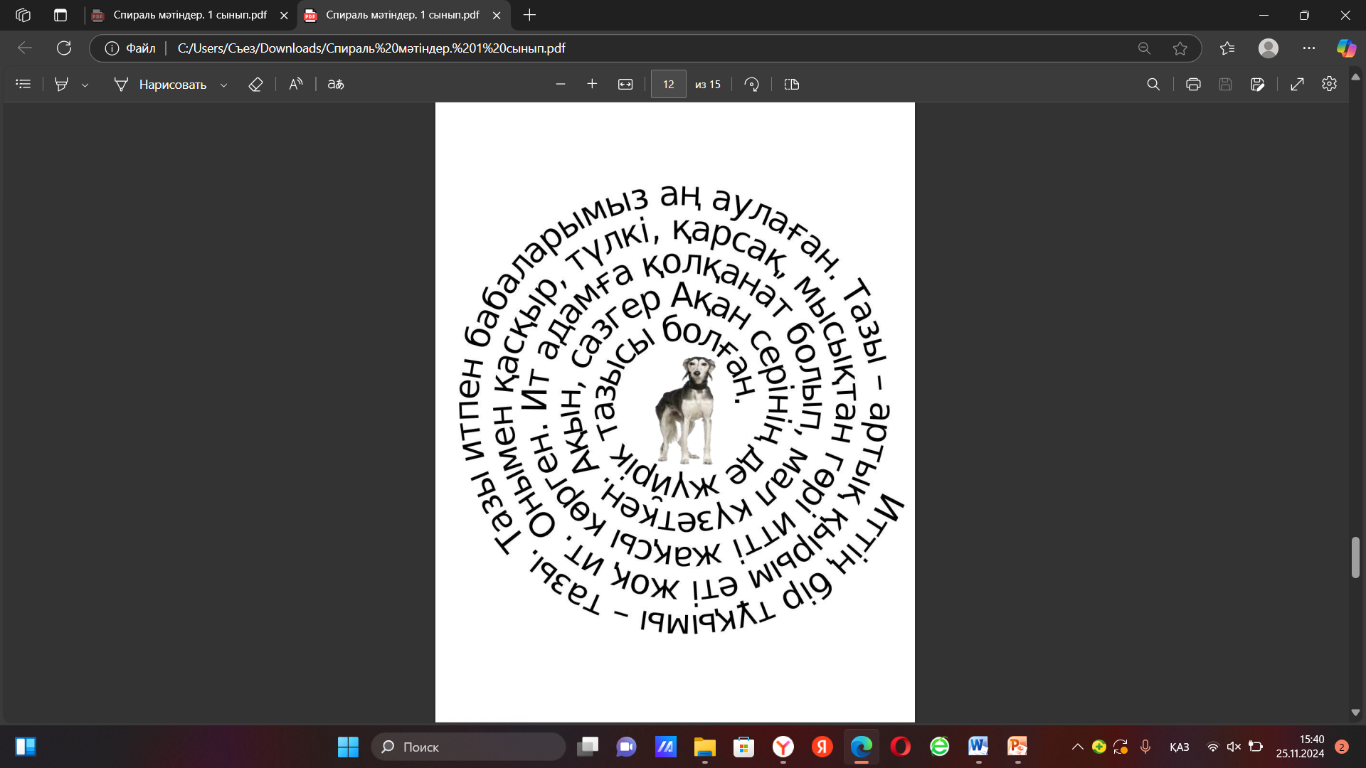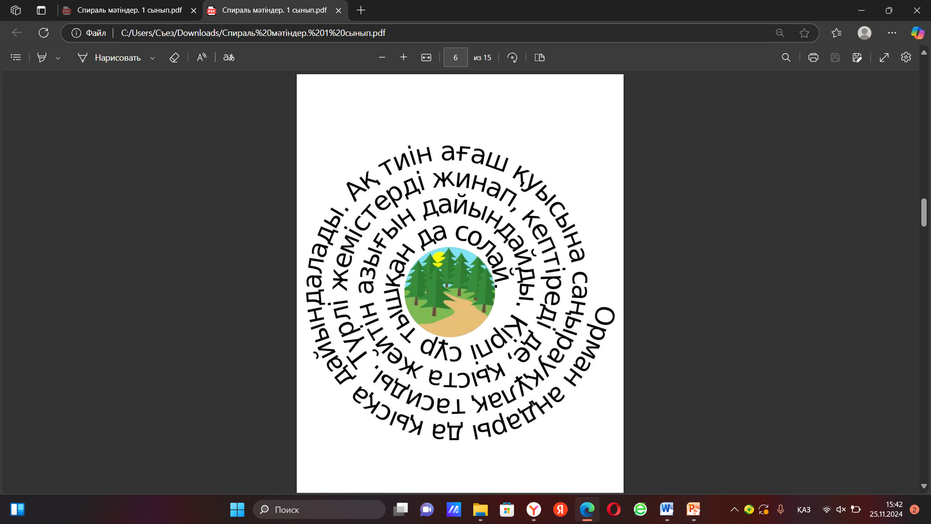 Әр топқа әр түрлі мәтіндер беріледі. Қатысушылар мәтінді «спираль» әдісімен оқиды.