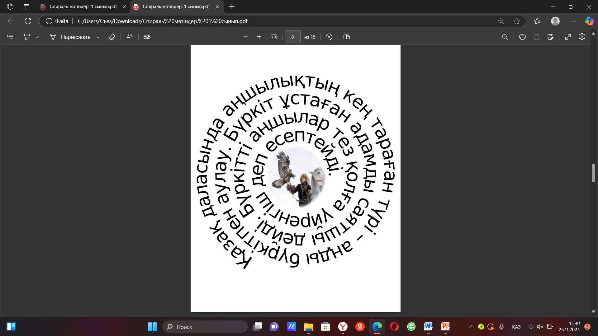 - берілген мәтіндердің мазмұнын түсінеді; мәтін бойынша тапсырмаларды орындайды; - орындалған тапсырмаларға баға береді. -ұлттық құндылықтарды таниды |
